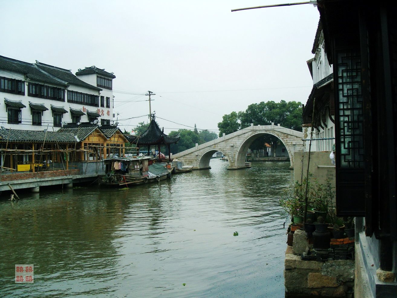巴城老街西临张家港河,河道在这里分了个岔,转个弯向镇里流去。河上设桥,为清光绪时建筑,古风浓郁。桥畔是几棵又粗又壮的古树,枝繁叶茂,至今已50岁有余,此情此景,让人仿佛一眼看到了当年这里一幕幕商贸繁华的景象:一批批南来北往的商贾,在这儿将船靠在岸边,上街交易商品或休闲。